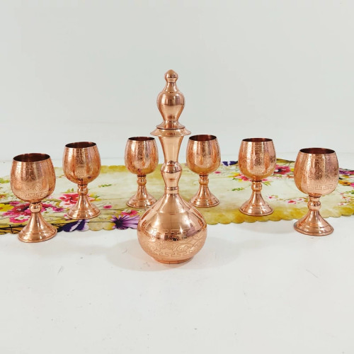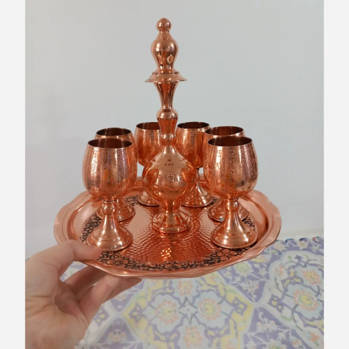 تنگ و جام (6 عددی) و سینی مسی زنجان نانو شده رنگ ثابت