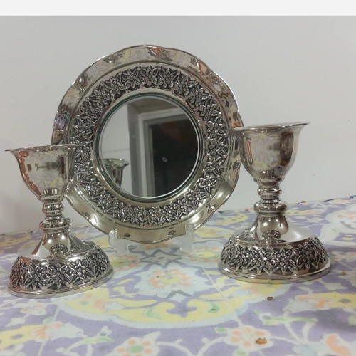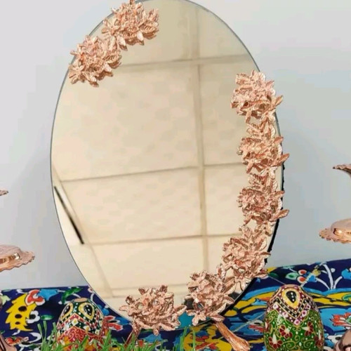 آینه و شمعدان رز مس تمام مسی کروم شده کار اعلا