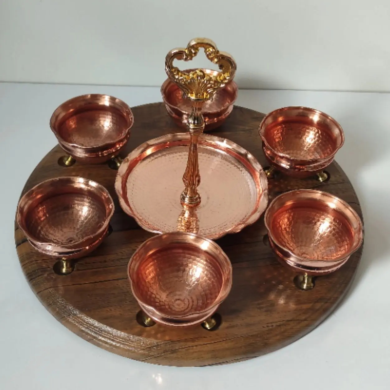 بستنی خوری و هفت سین مسی نقلی خورشیدی 6 عددی در مس نمونه زنجان.نانو شده