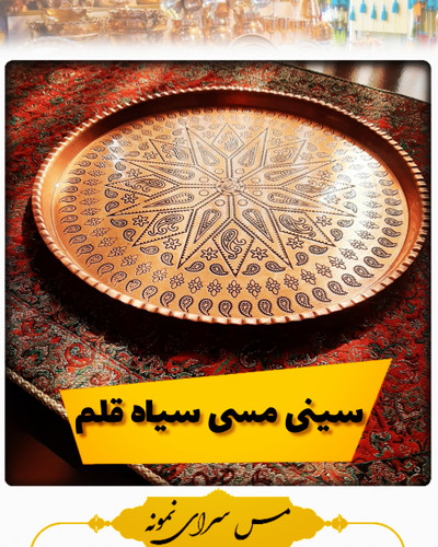 سینی مسی ترمه سیاه قلم نانو شده سایز 9 قطر 34 سانت فوق العاده با کیفیت