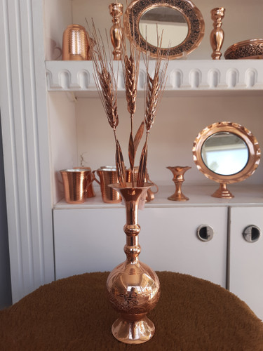 گلدان مسی با ست سنبل مسی ۶ عددی رنگ مسی ،برنجی ،نقره ای