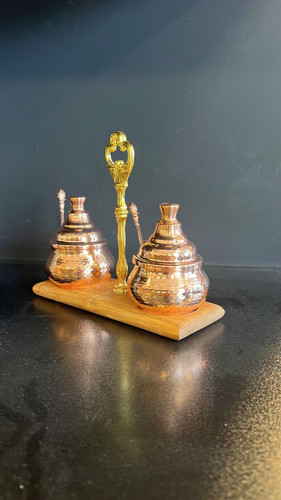 جا ادویه مسی و مرباخوری خوری 2 تایی مسی همراه استند