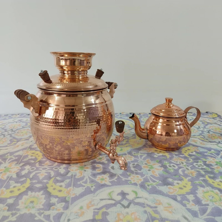 سماور روگازی 5 لیتری مسی با قوری رنگ ثابت