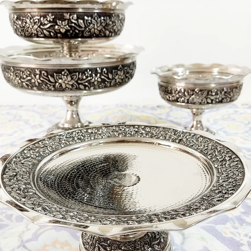 اگر به دنبال سرویسی هستید که هم ظاهر لوکس و مدرن داشته باشه و هم ریشه در هنر اصیل ایرانی، این سرویس پذیرایی مسی بهترین انتخابه.