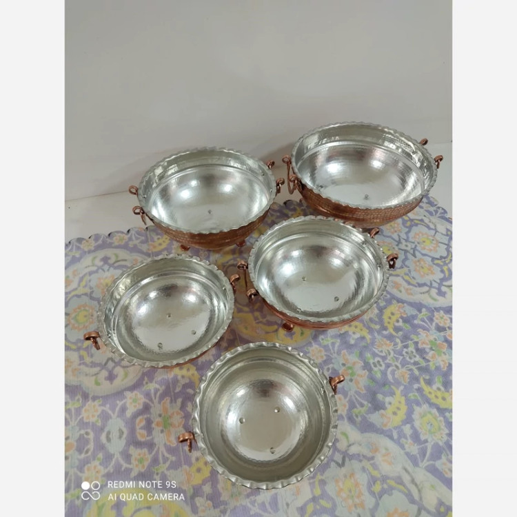 کاسه تمام مسی گوشواره دار آتامیز در 5 سایز داخل قلع اعلا میوه یا سوپ آجیل و...