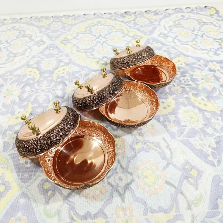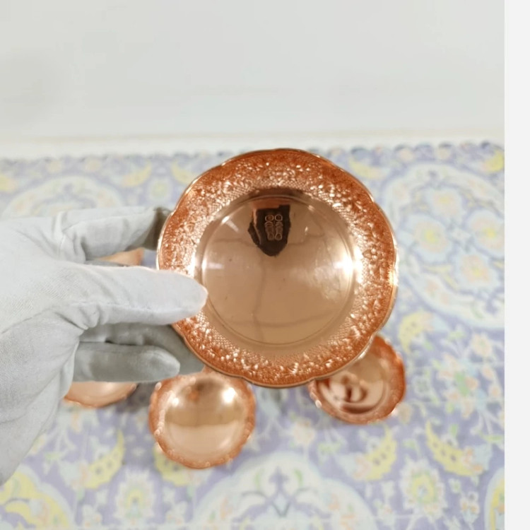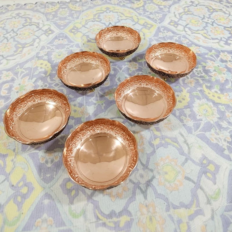 6 عدد پیاله مسی سه پایه گل برجسته کاری شده