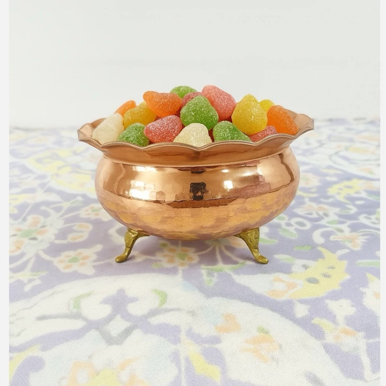نقل خوری مسی دست ساز زنجان مدل 3 پایه چکش کاری رنگ ثابت