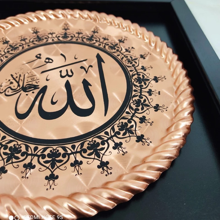 دیوار کوب تابلو مسی گرد با قاب مربعی طول و عرض ۳۰