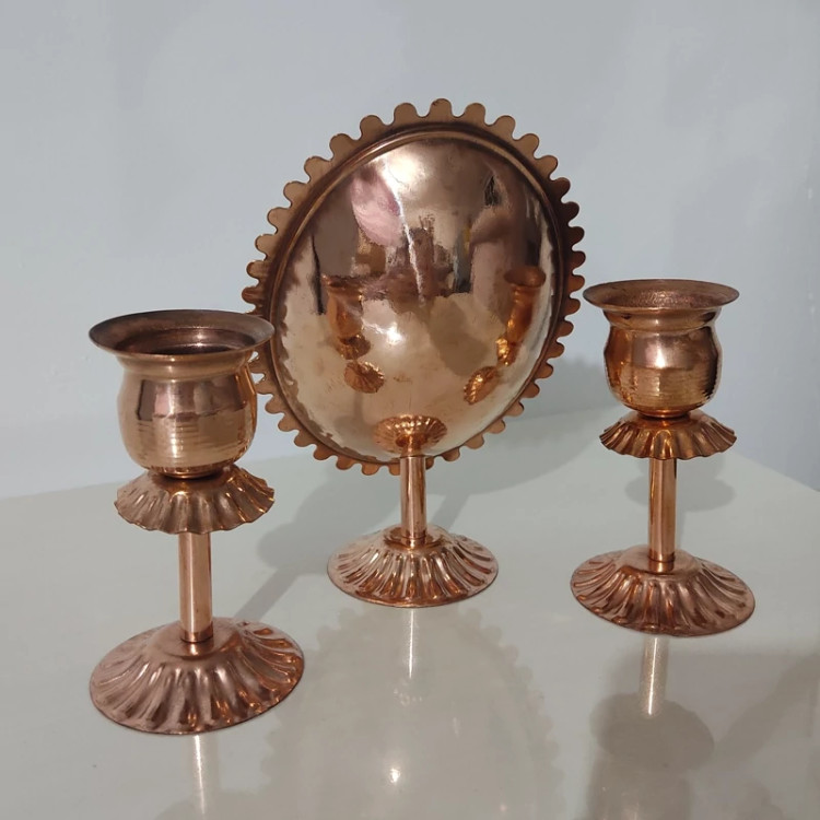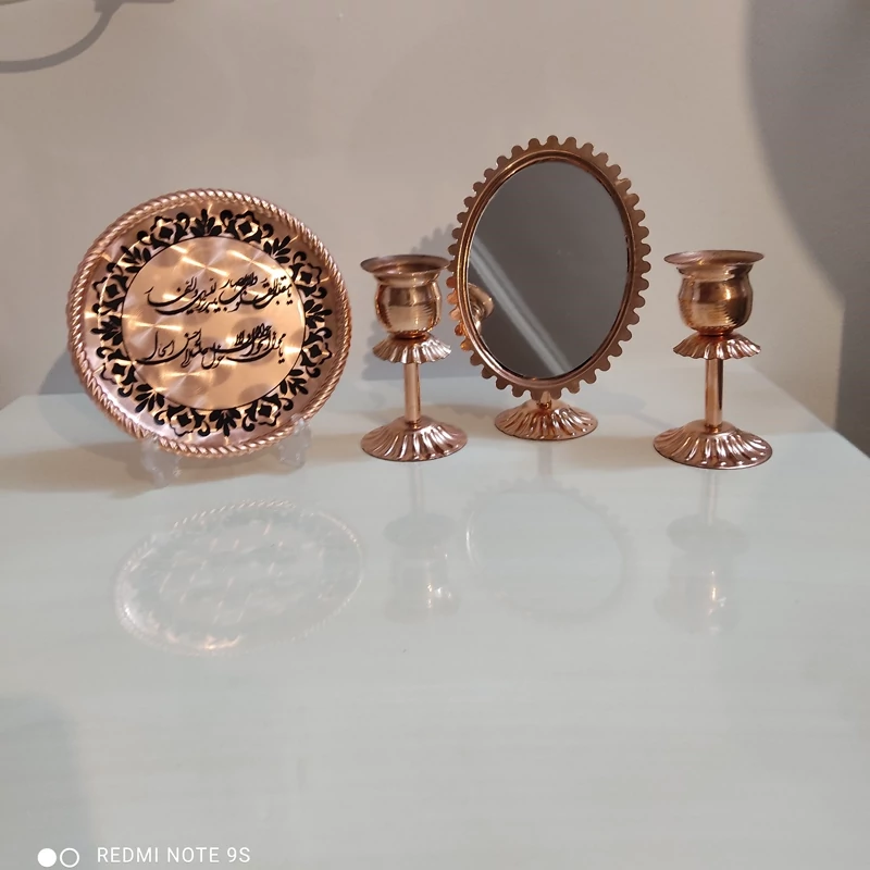 آینه و شمعدان تمام مس نانو شده رنگ ثابت