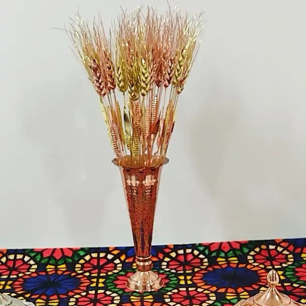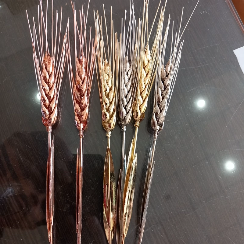 گل و گندم مسی به صورت بسته شش تایی برای عید و روزهای دیگر ویدیو محصول را مشاهده فرمایید گل ها در سه رنگ طلایی و مسی و دو رنگ هست و گندم ها در سه رنگ طلایی و مسی و نقره ای میباشد طول گندم40 سانتی متر