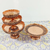 سرویس تمام مس چهار تیکه پذیرایی مسی رز گل چکشی سیاه قلم نانو