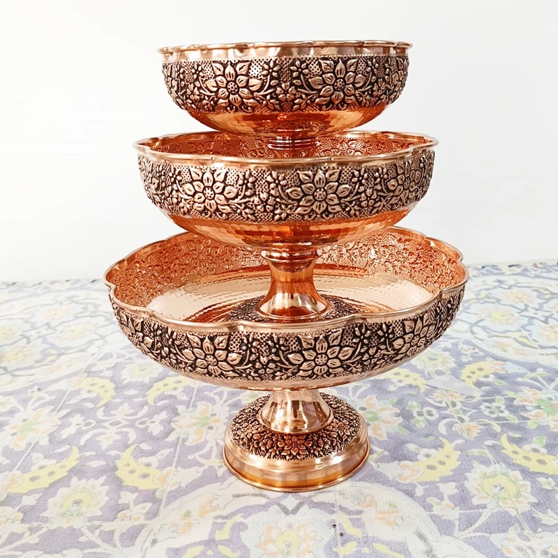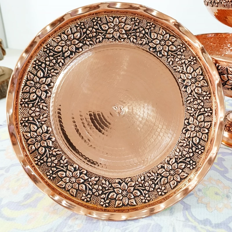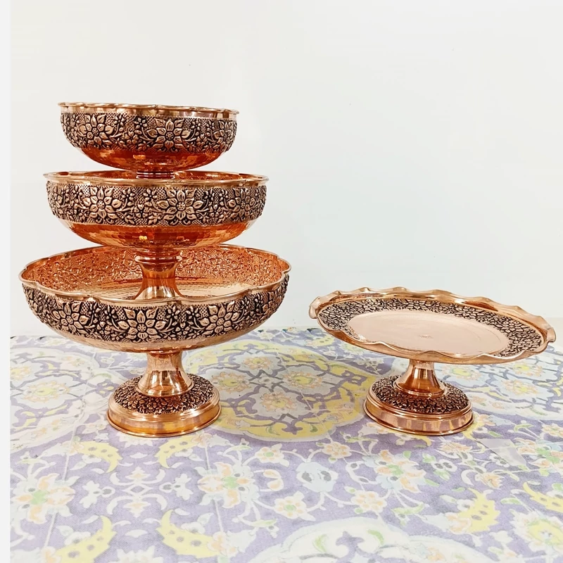 ااین سرویس پذیرایی مسی 4 تکه کاملاً دستساز تولید مستقیم مجموعه ما بوده و بدون هیچ واسطهای از تولیدی به دست شما میرسد.به همین دلیل محصولی با کیفیت بالا، قیمت منصفانه و اصالت تضمینشده دریافت میکنید.