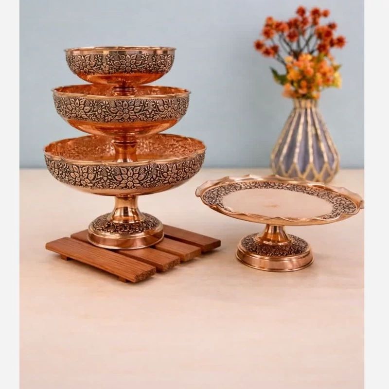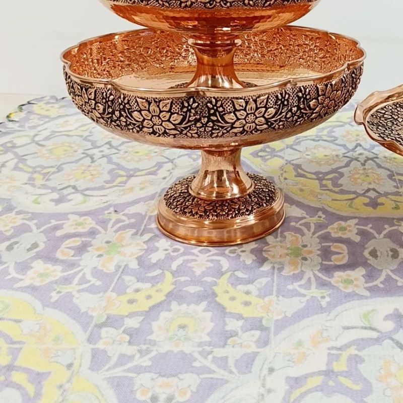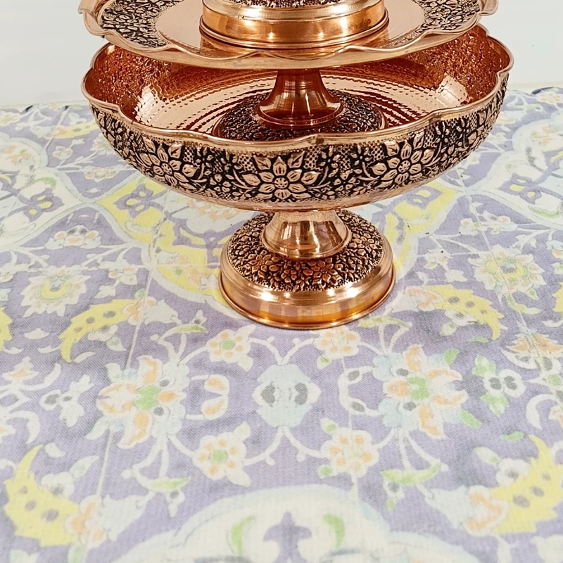 میوه خوری مسی زنجان گلبرگ درجه یک دور قلم خورده گل برجسته به صورت بسیار شیک ظرف نانو شده و رنگ ثابت چکش کاری شده