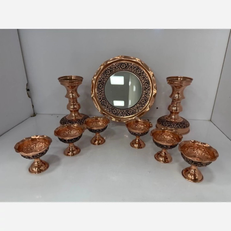 هفت سین و آیینه و شمعدان مسی گلبرگ زیبا زنجان رنگ ثابت بسته ی نوروزی
