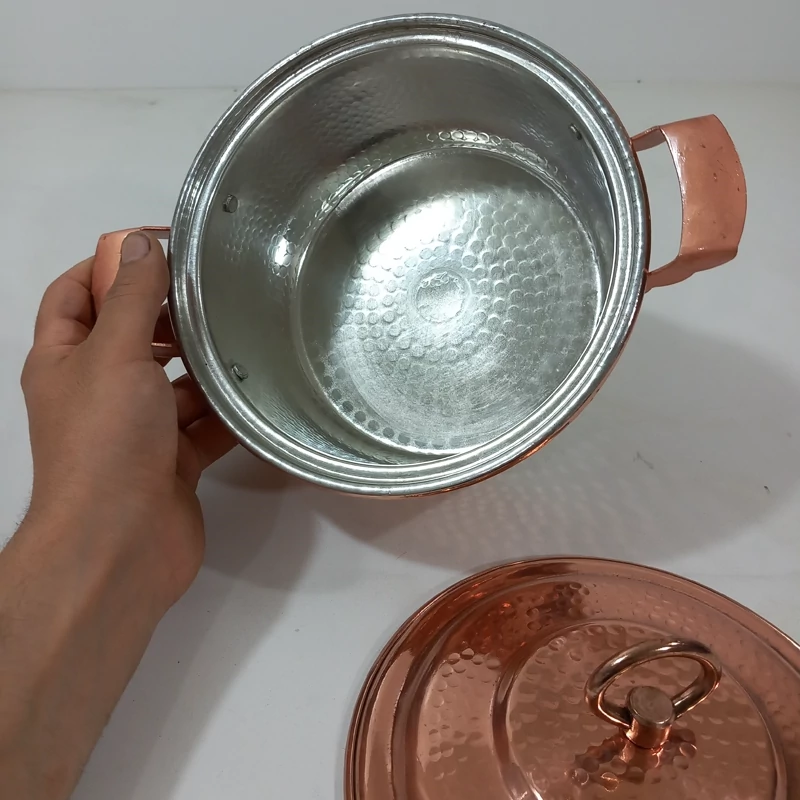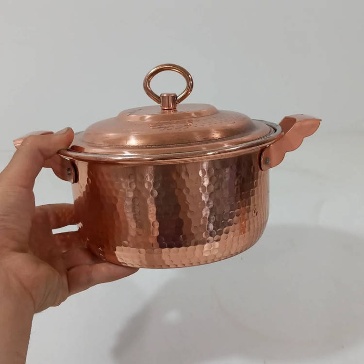 قابلمه مسی (کته پز ) 3 نفره چکشی با ضخیم ترین و شفاف ترین ورق مسی ،