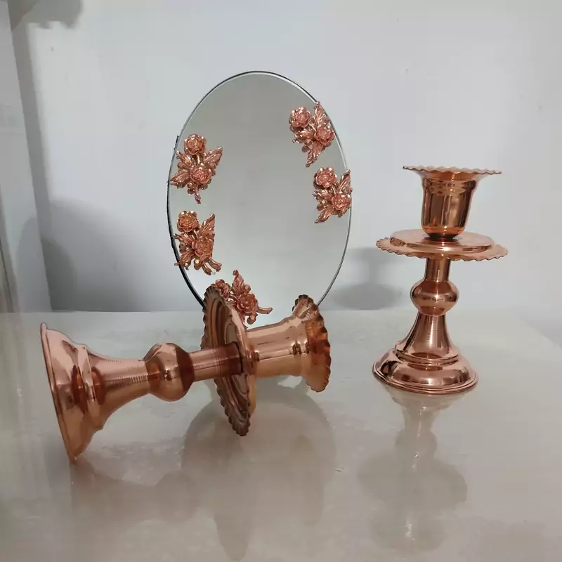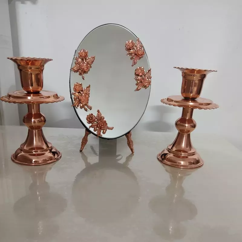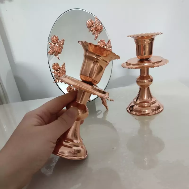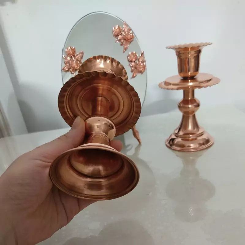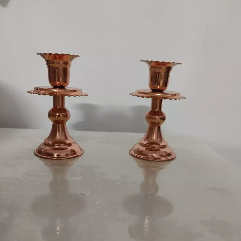 شمعدان جفتی باهم نانو شده رنگ ثابت تمام مس کار تمیز و براق ارسال رایگان کار اعلا و با کیفیت