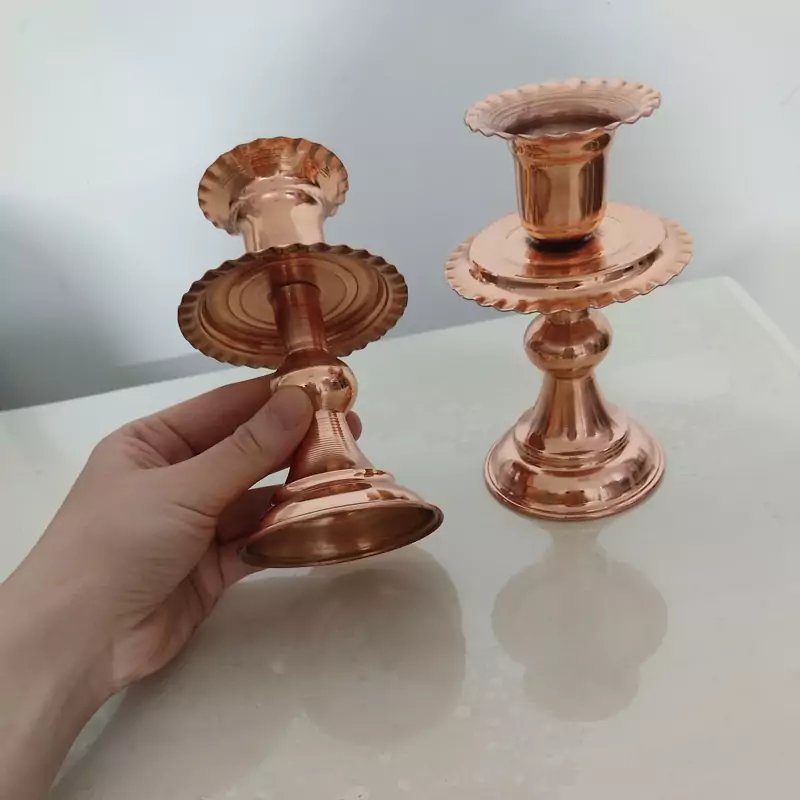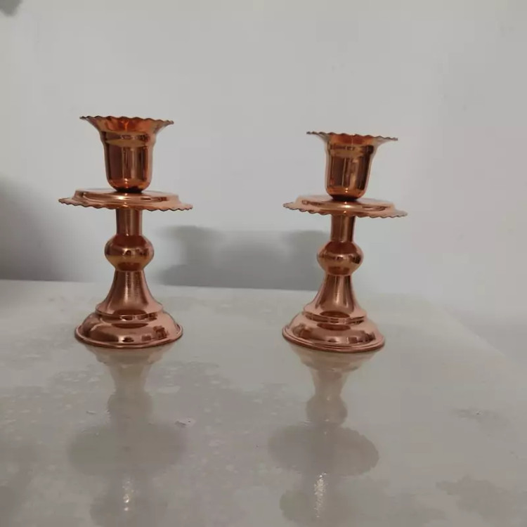 شمعدان مسی دو عدد باهم کار براق و شیک نانو شده