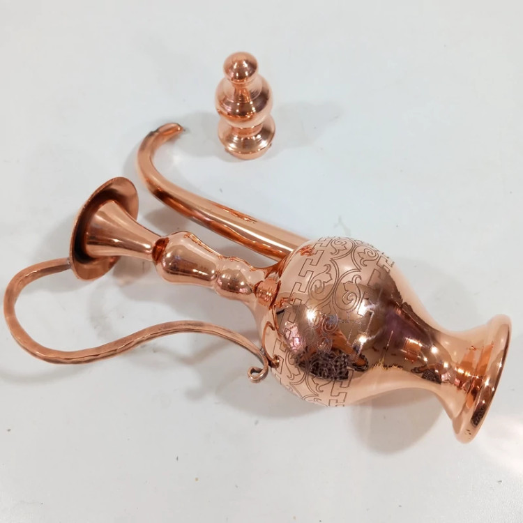 گلاب پاش تمام مسی در دار زنجان رنگ ثابت طرح دار سایز متوسط