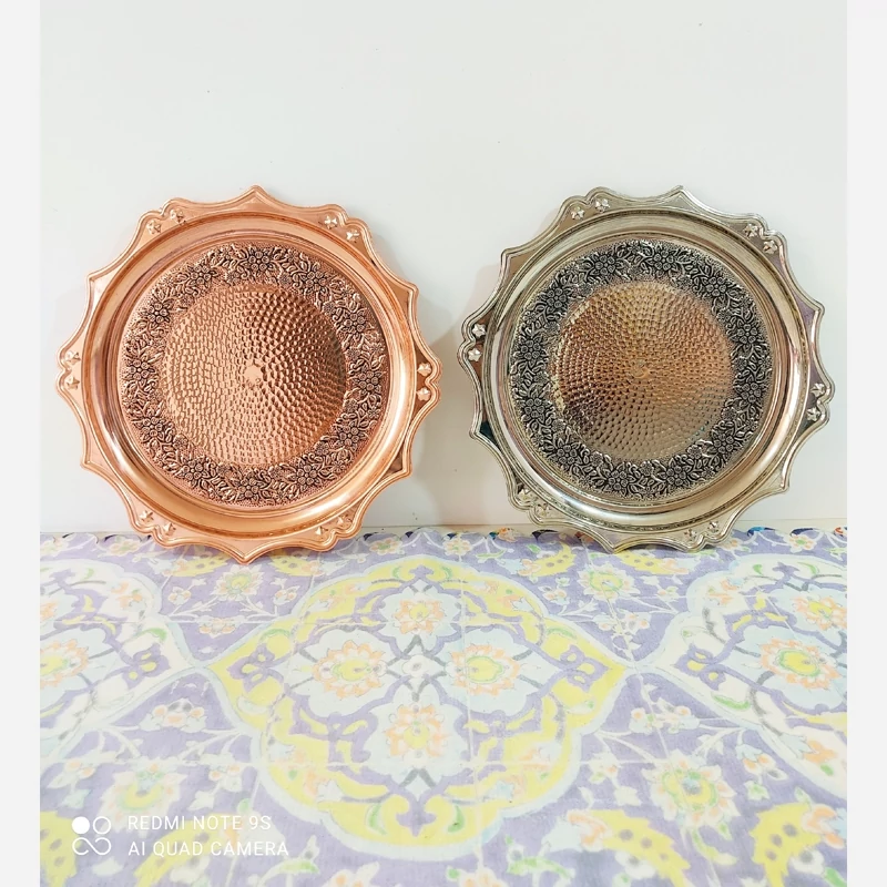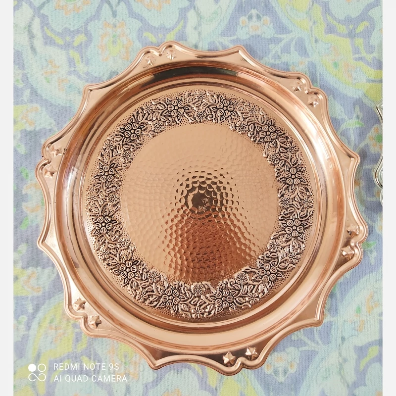 سینی مسی گلبرگ خورشیدی تمام مس نانو شده بدون تغییر رنگ کار شیک و ضخیم چکش کاری شده،