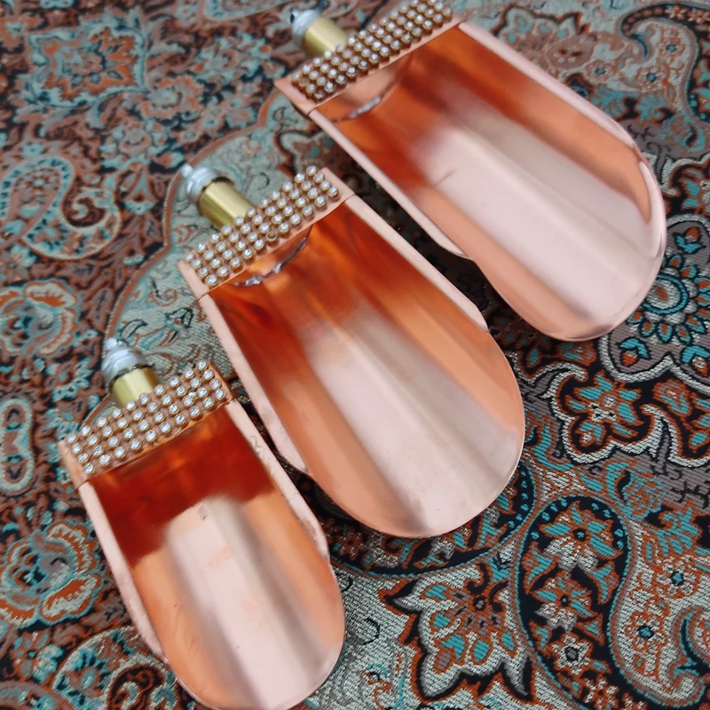 سرتاس تمام مس سه تایی نگین دار و دسته دار در سه سایز مناسب برای برداشتن اجیل و تخمه و تنقلات و کوچیکش برای نمک و...کار شیک مناسب برای هدیه و...