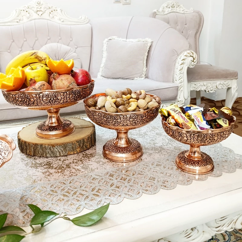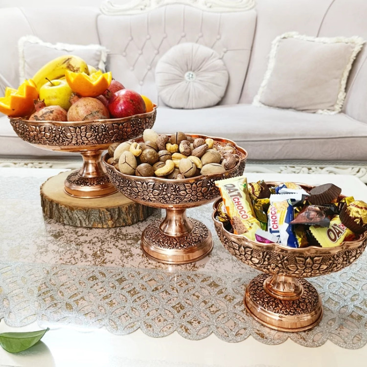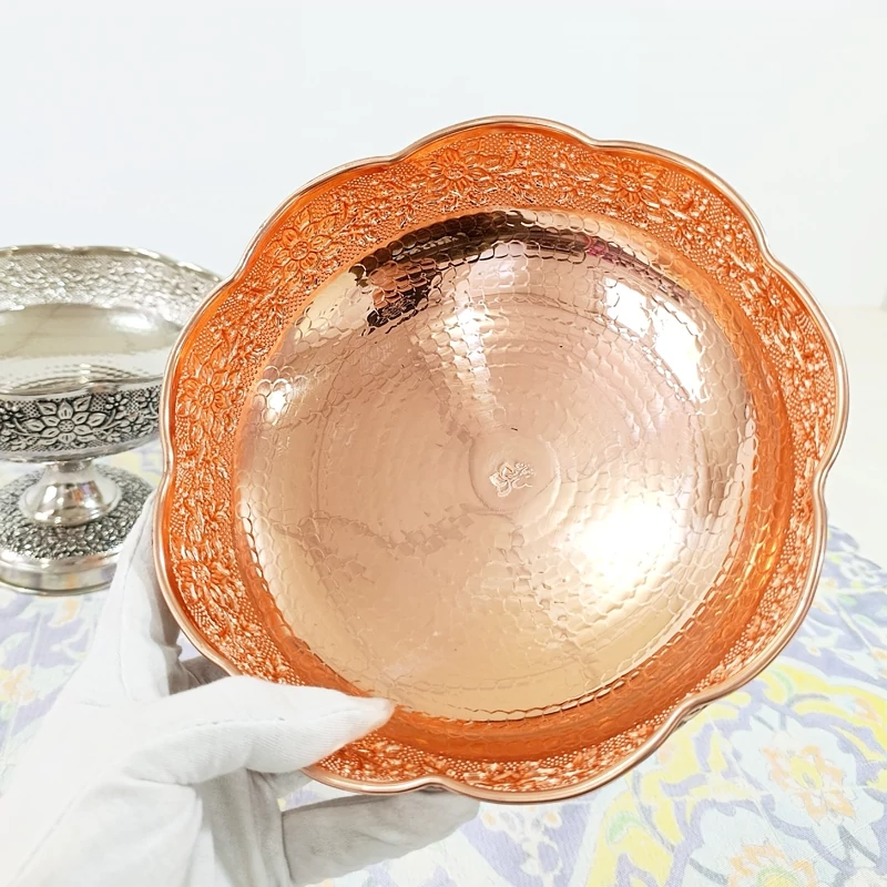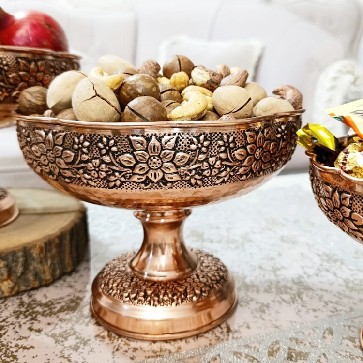 آجیل خوری مسی طرح گل دست ساز سیاه قلم قطر 22