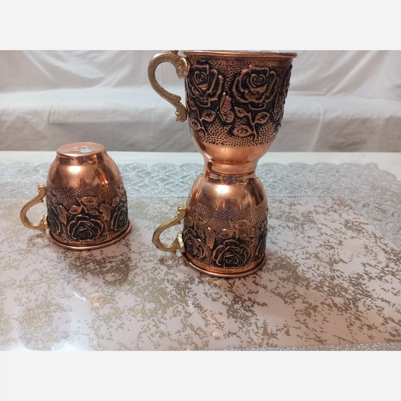 لیوان مسی شش تایی گلبرگ زیبا دست ساز زنجان نانو شده رنگ ثابت