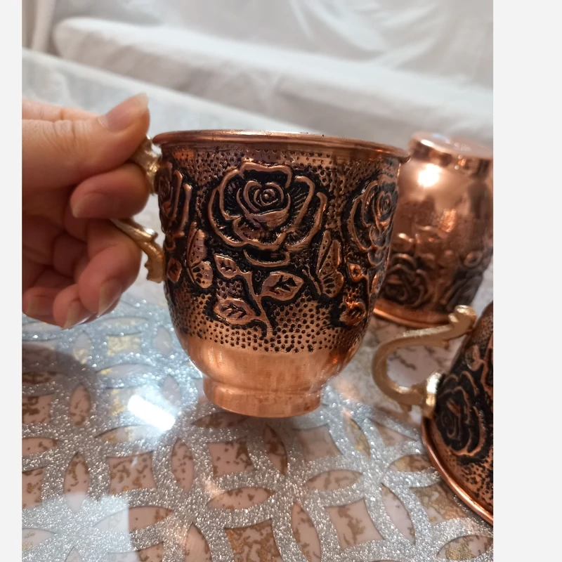 لیوان مسی شش تایی گلبرگ زیبا و ضخیم