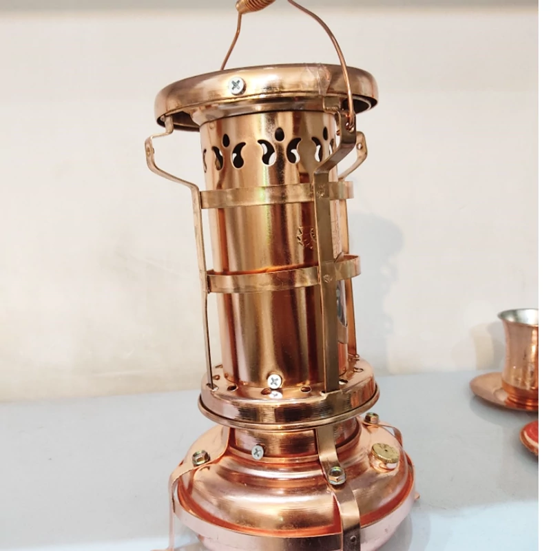 با فتیله قابل تنظیم و مخزن نفت که قابل استفاده است ولی بیشتر برای دکور که فضای سنتی به خانه میدهد