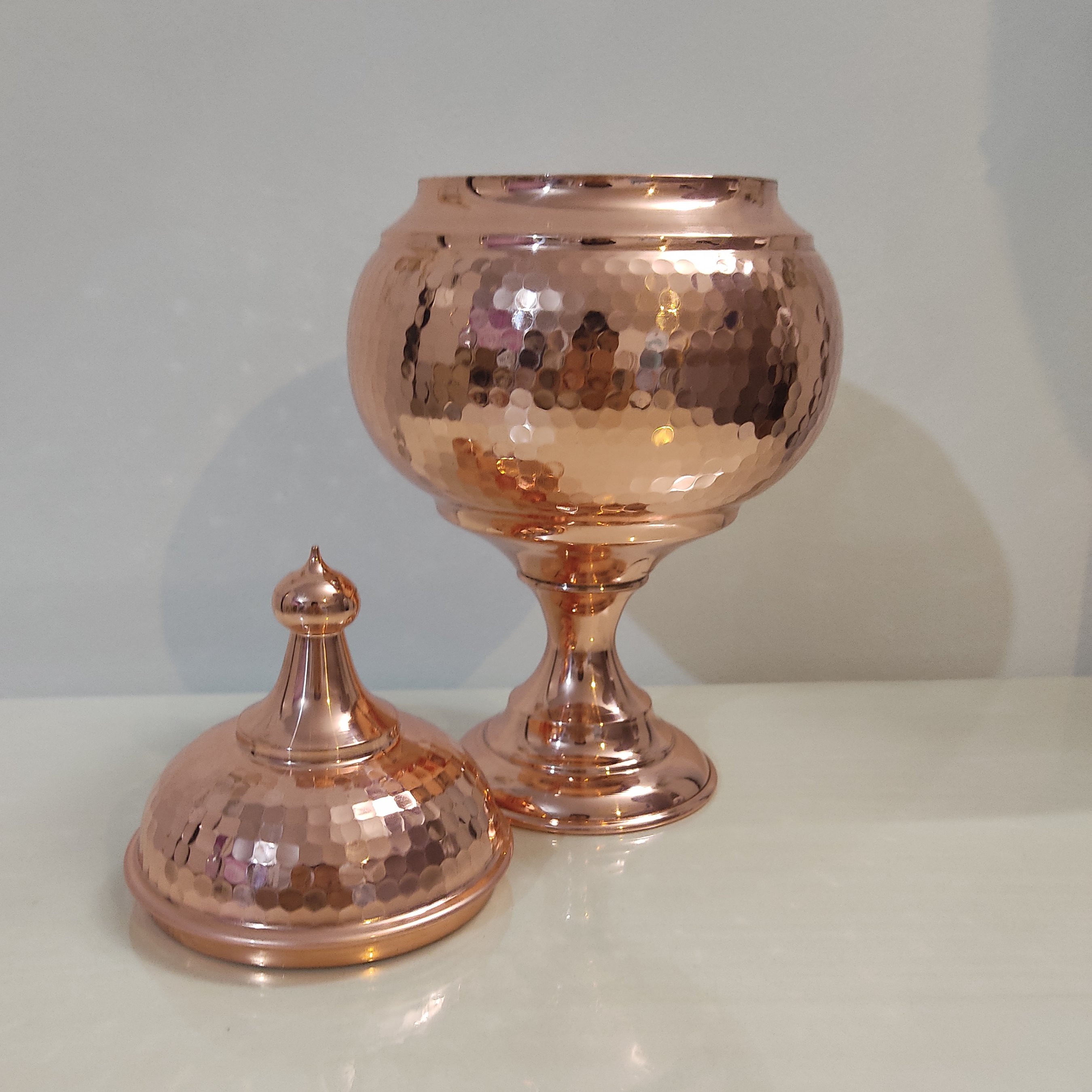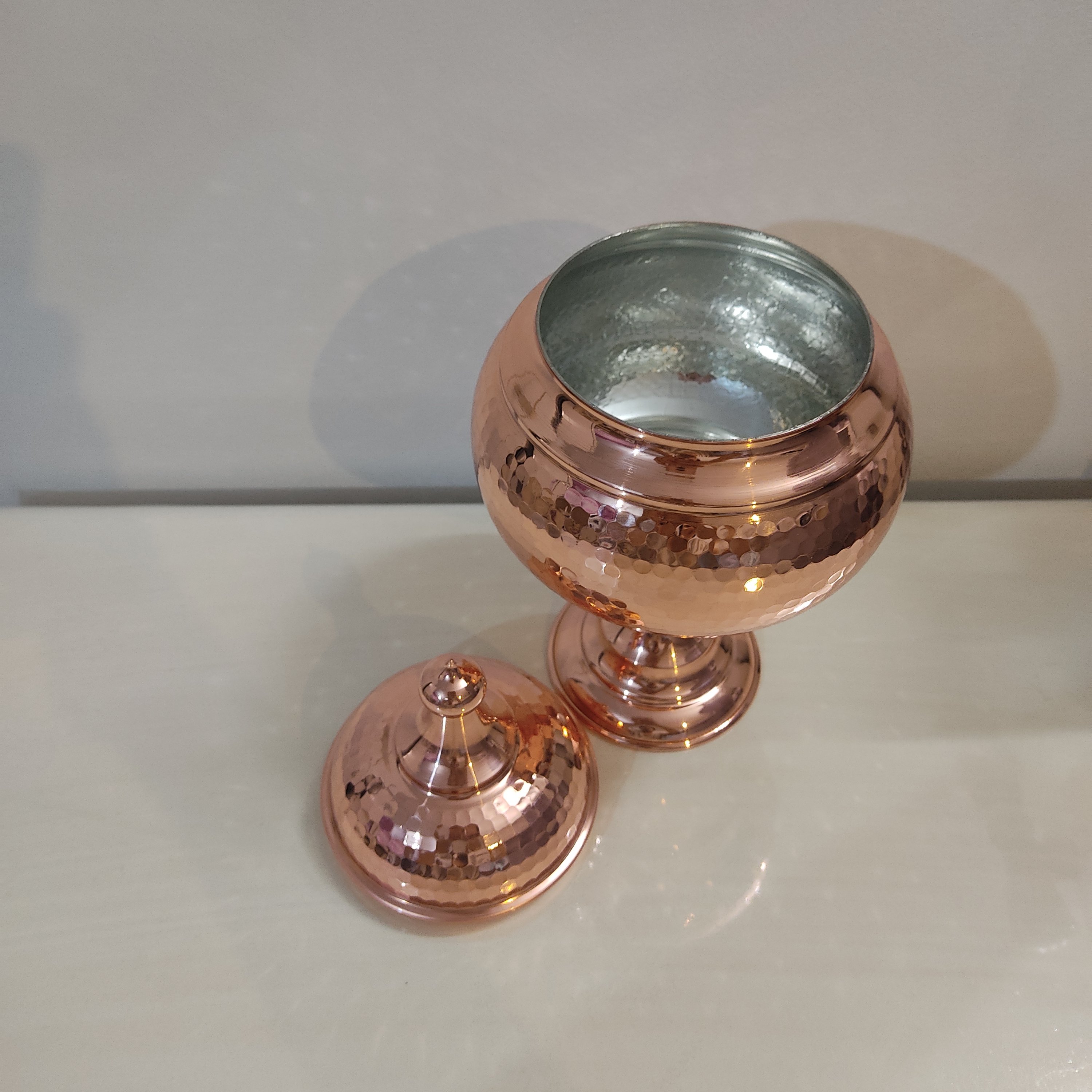 شکلات خوری گنبدی چکشی فضلی داخل قلع با چکش تمیز با بهترین و براق ترین ورق مس تولید شده است