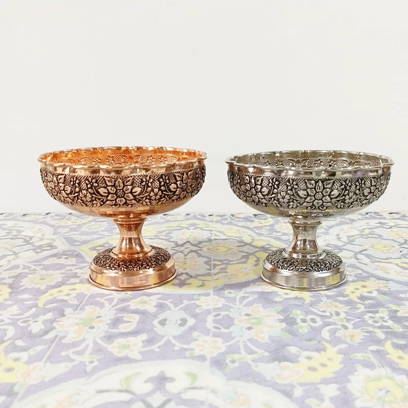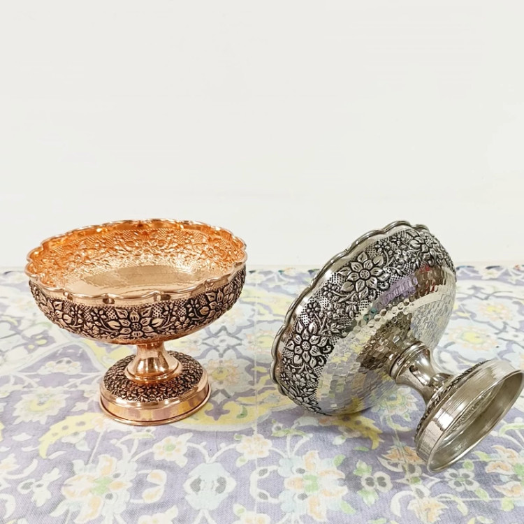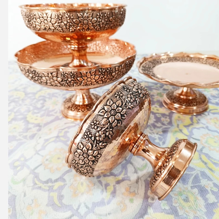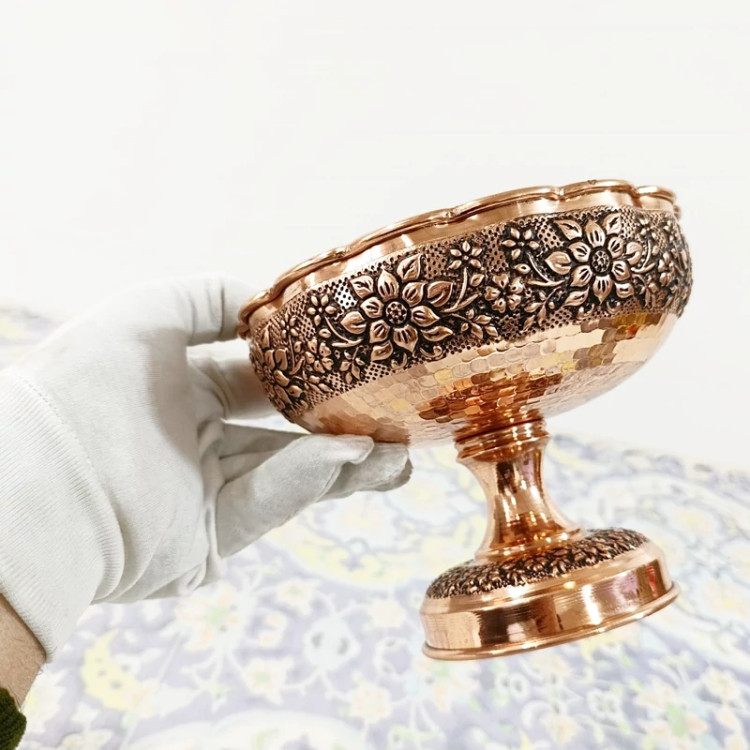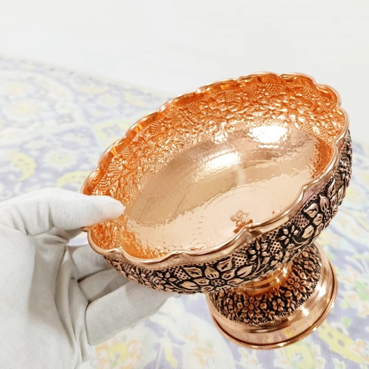 شکلات خوری گل برجسته کاری شده تمام مسی دست ساز رنگ ثابت