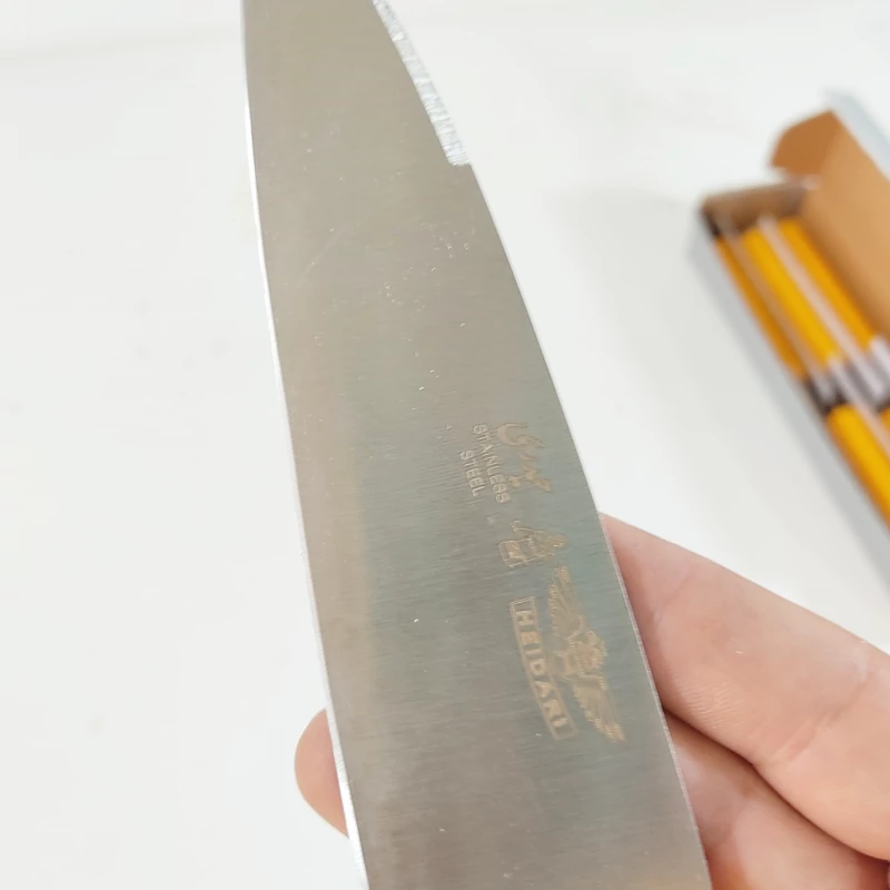 چاقوی آشپزخانه زنجان طول 27 سانتیمتر برند حیدری زنجان تیغه بسیار باکیفیت ضدزنگ ضخامت تیغه 4 میل که بسیار ضخیم است و به هیچ عنوان کج یا خراب نمیشود دسته پلاستیک مرغوب است و چوب نیست که به مرور خراب شود #چاقو