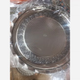 سینی سه عددی مسی کروم شده بسیار زیبای زنجان درجه یک ضخیم و نانو شده رنگ ثابت با گل های بسیار زیبای برجسته سیاه قلم