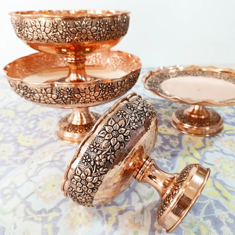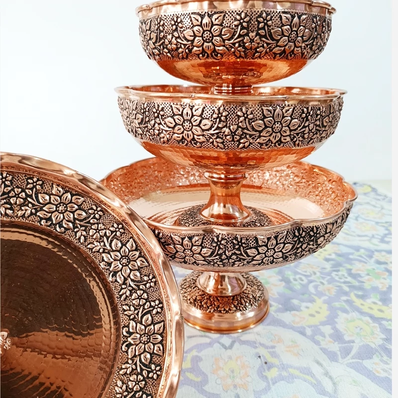 سرویس گلبرگ 4 تیکه تمام مسی قلم کاری نانو شده