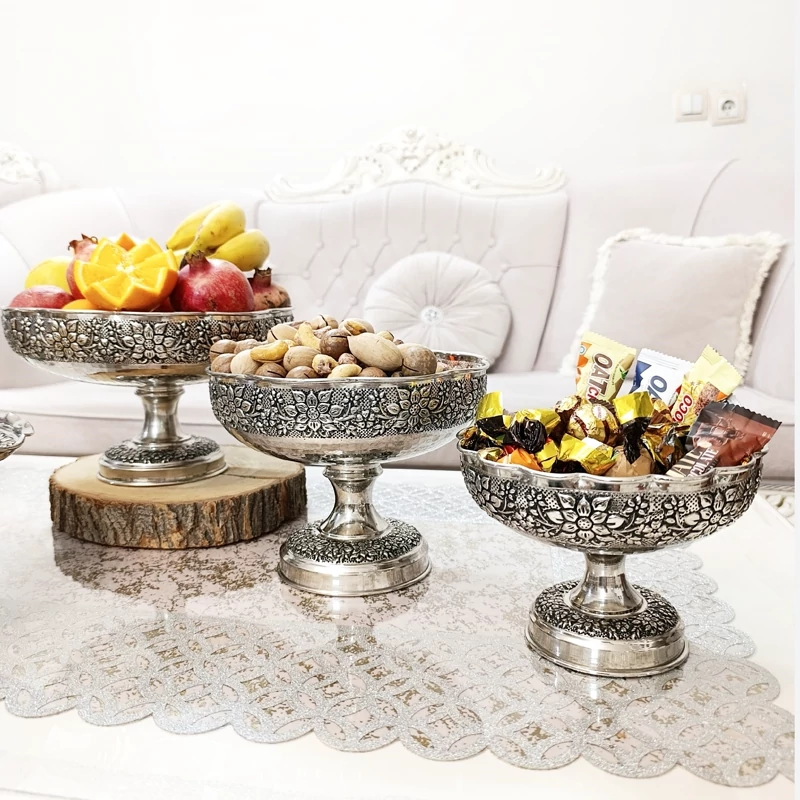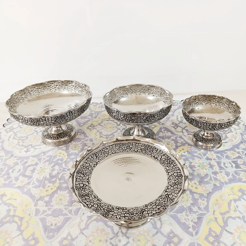 ست شامل میوه خوری و شکلات و شیرینی خوری و آجیل رز گل سیاه قلم