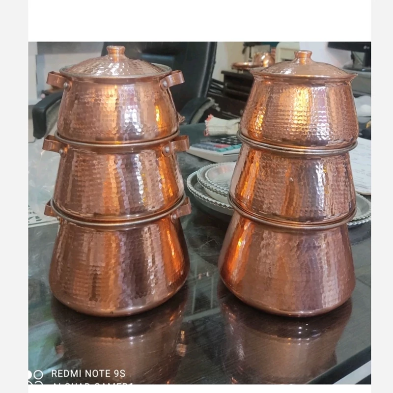 تیانچه سه تایی دسته دار مسی چکشی داخل قلع نانو شده رنگ ثابت ارسال رایگان کار بسیاز زیبا و ضخیم کاربردی در روزمره و نوزادی