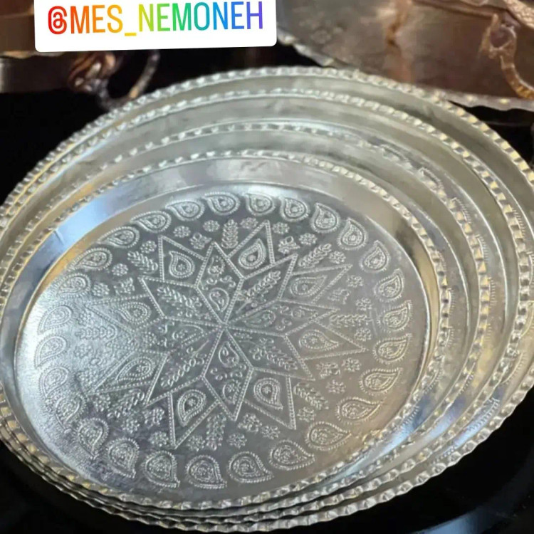 سینی مسی ترمه سفید(کروم) سایز 6 قطر 28 سانت