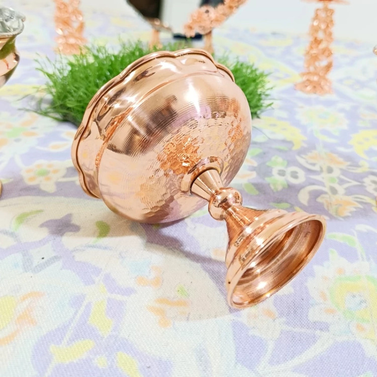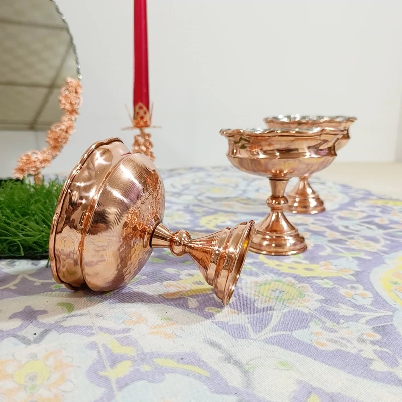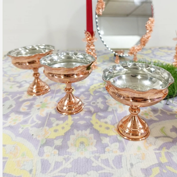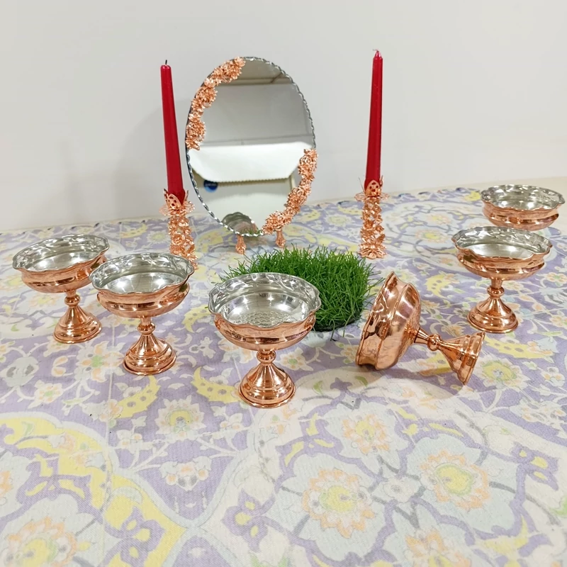 جا هفت سین یا جا آجیل و تنقلات شش تایی زیبا براق تمام مس چکشی پایه دار ارسال رایگان نانو شده رنگ ثابت کار بسیار ضخیم و درجه یک