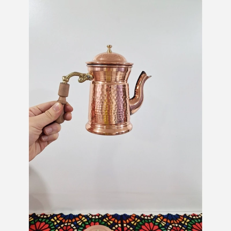 قوری دمنوش بسیار زیبا و کاربردی سایز کوچک درجه یک نانو شده داخل قلع شده دسته چوبی گنجایش 2 لیوان دسته دار