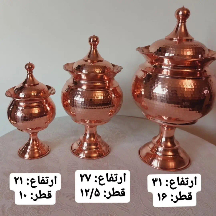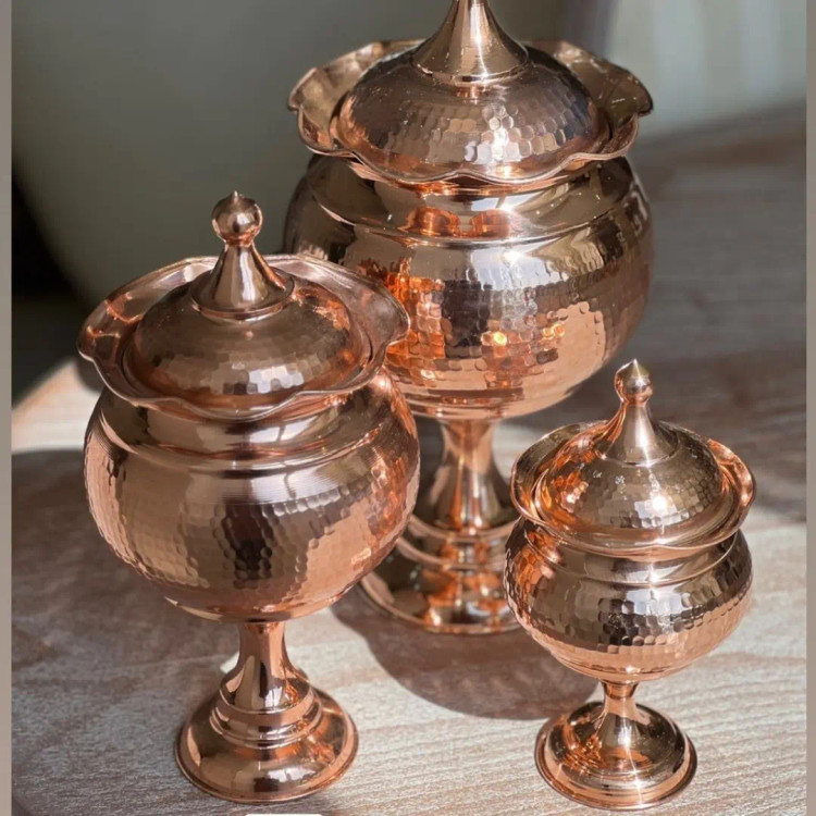 آجیل خوری مسی گنبدی در 3 سایز 3 عددی.سایز1 ارتفاع 21.سایز 2 ارتفاع27.سایز3ارتفاع 31 سانت مناسب سرو آحیل،شکلات پذیرایی