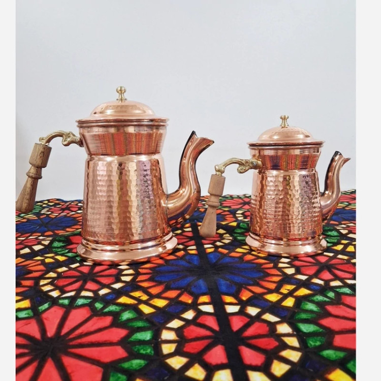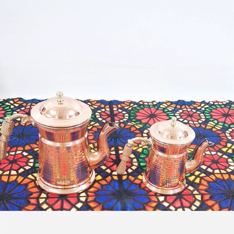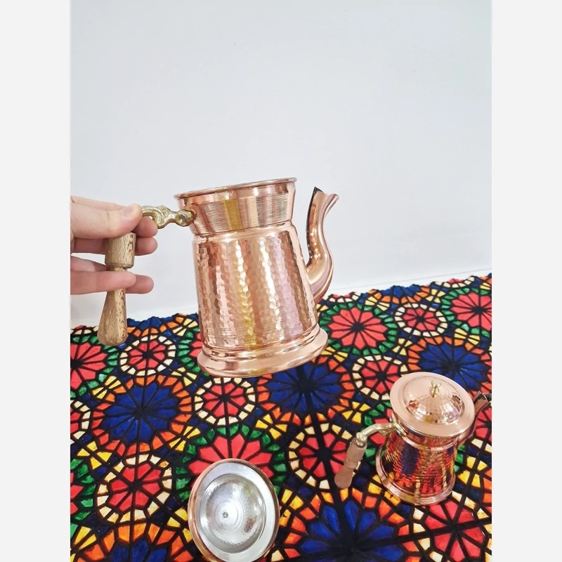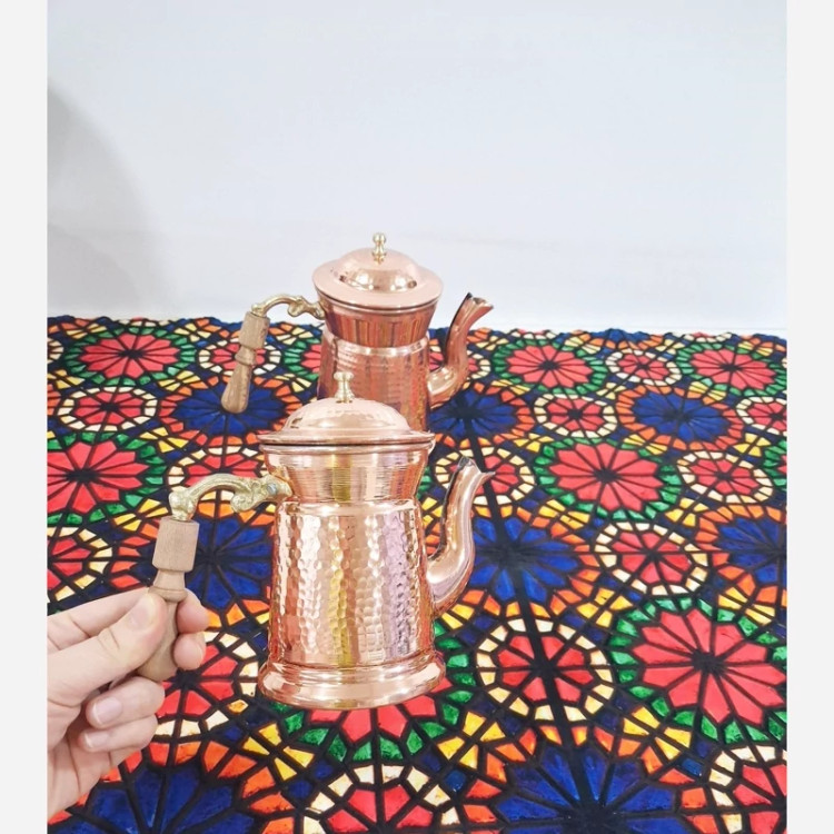 قوری دمنوش مسی سایز بزرگ زیبای دسته چوبی نانو شده