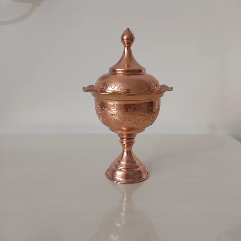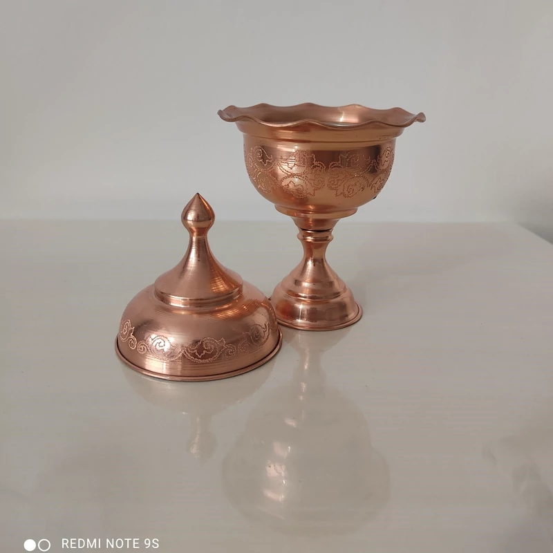 قندان تک پایه دو عددی طرح دار تمام مس داخل قلع و داخل مسی موجوده نانو شده ارسال رایگان با ورق براق و زیبا مناسب هدیه دادن و استفاده روز مره با قیمت تولیدی