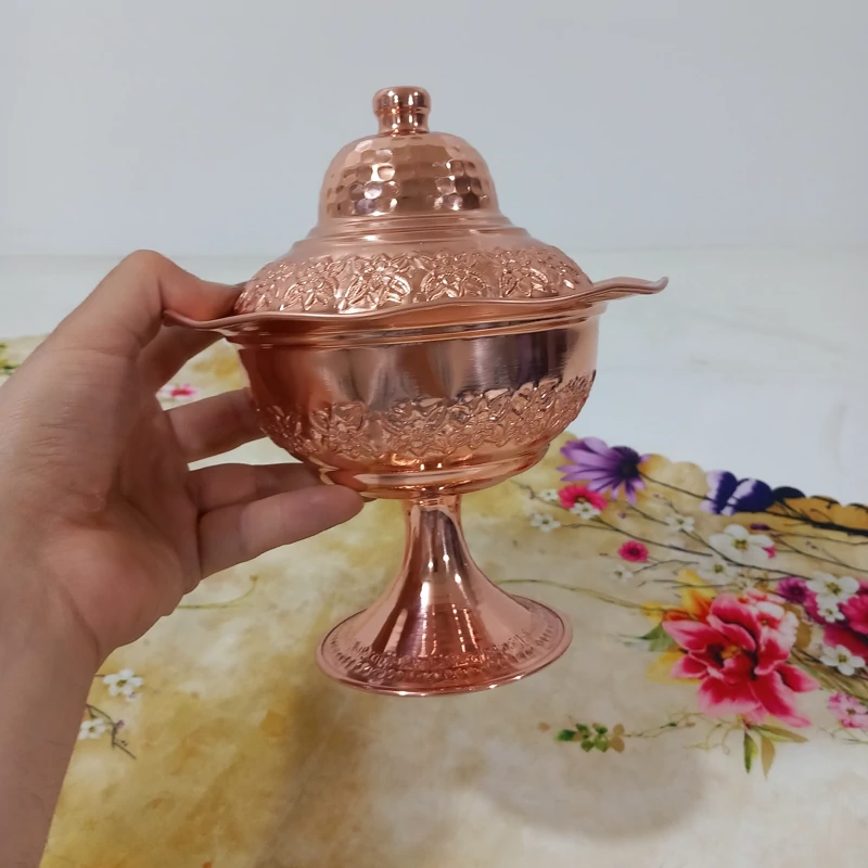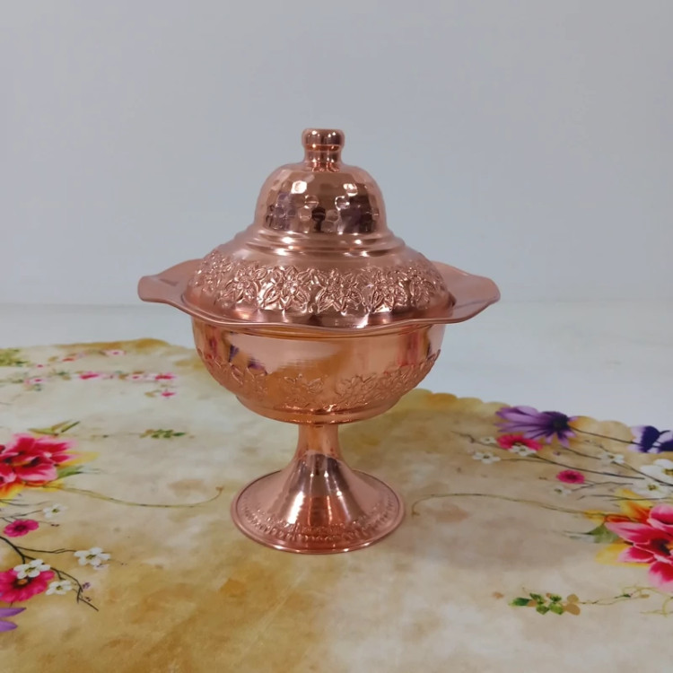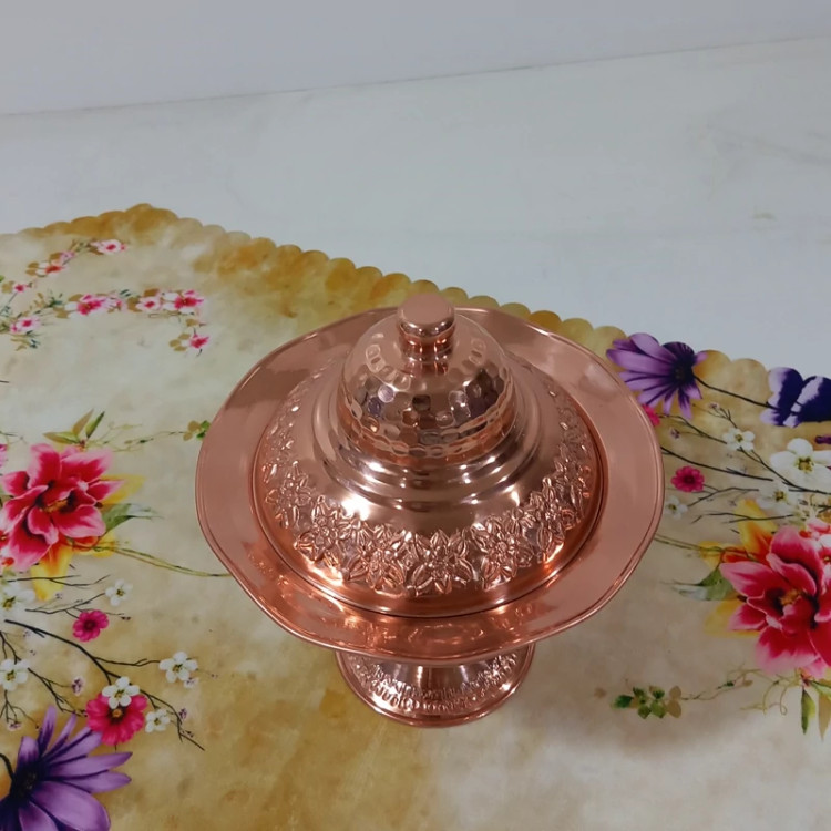 شکلات خوری درب دار مسی زنجان طرح ریز گل برجسته