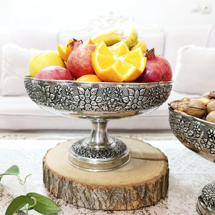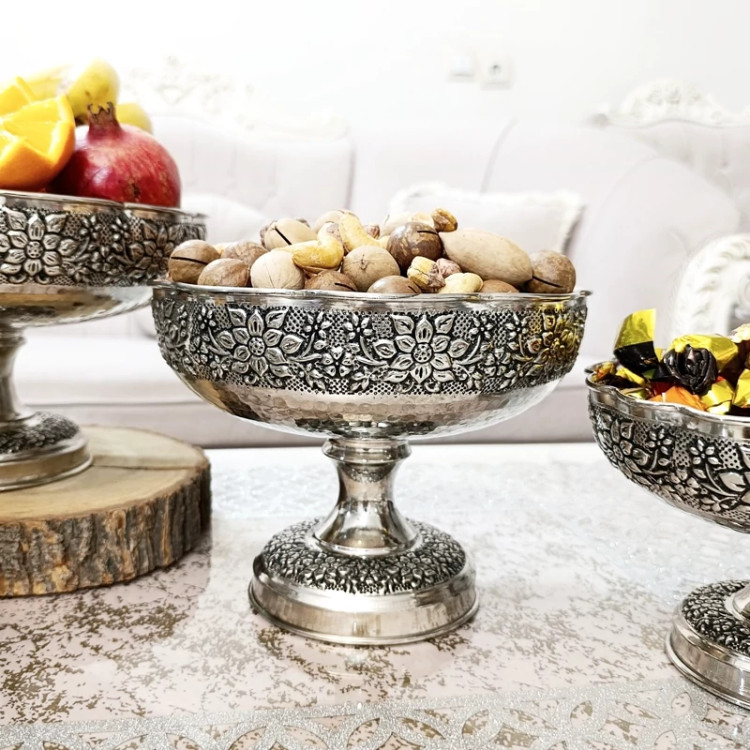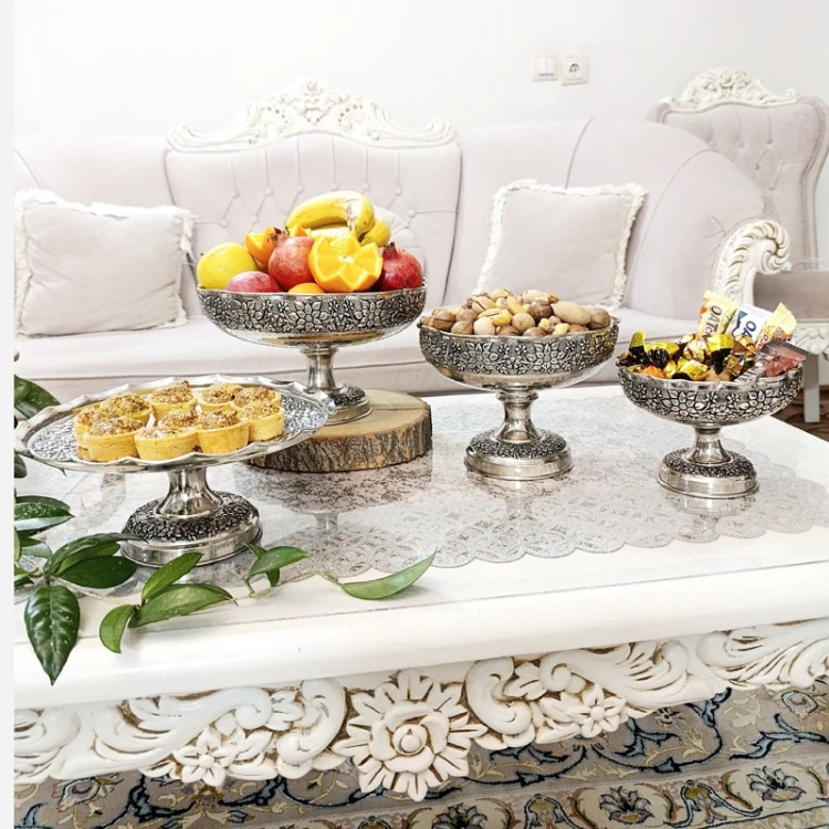 ست پذیرایی گلبرگ مسی کروم شده نقره ای رنگ ثابت