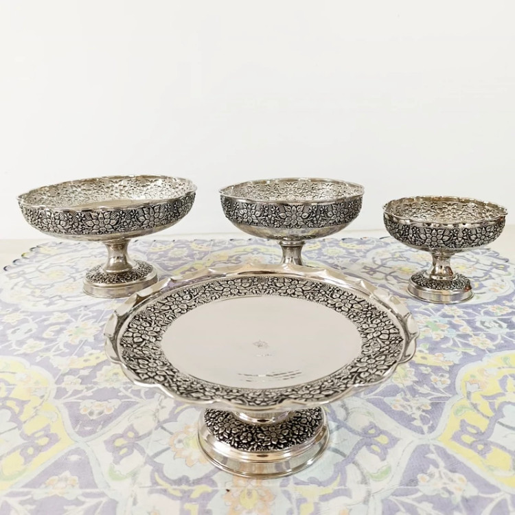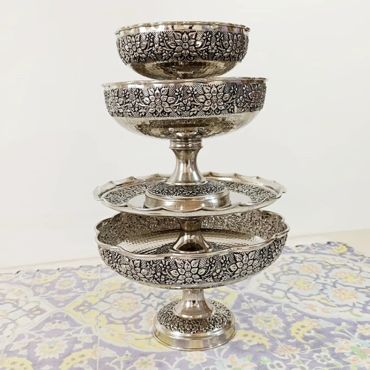 سرویس پذیرایی مسی کروم گل برجسته سیاه قلم 4 تیکه نانو رنگ ثابت
