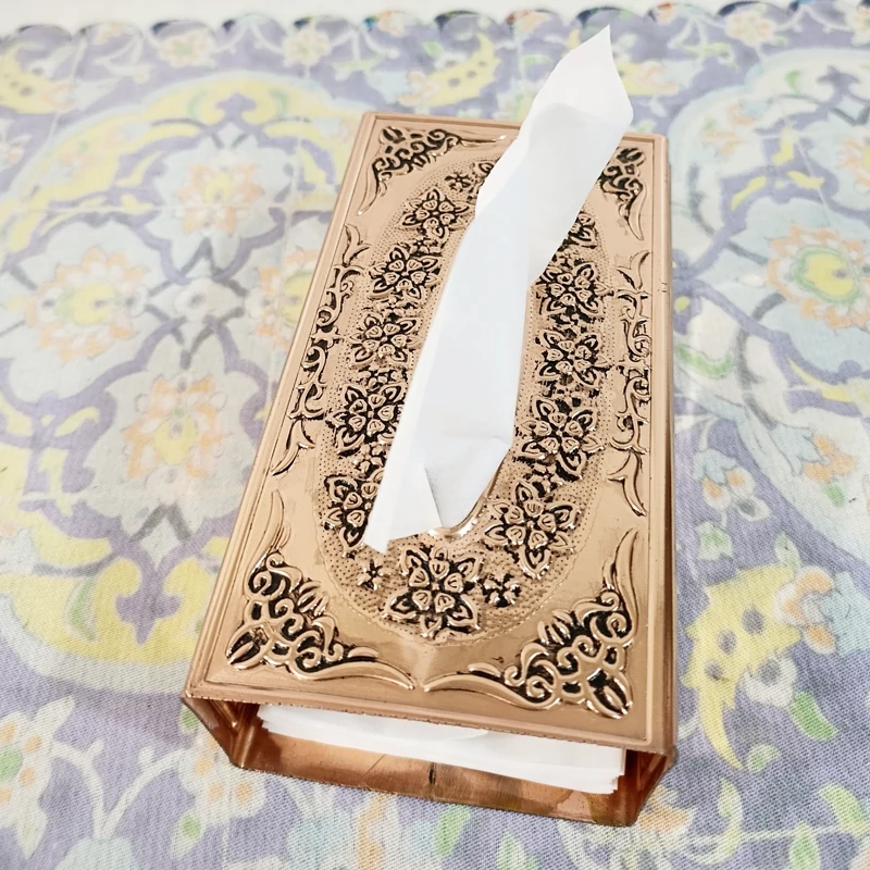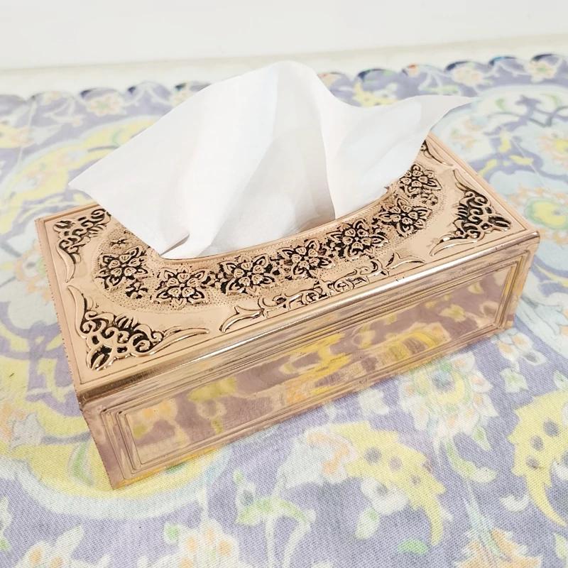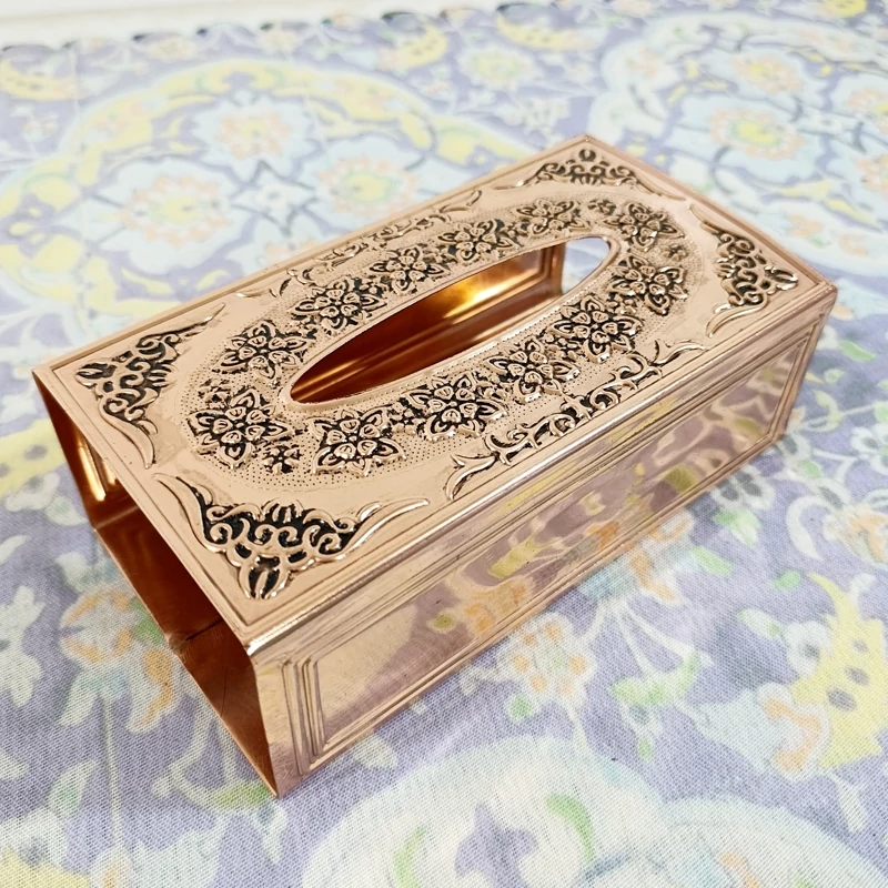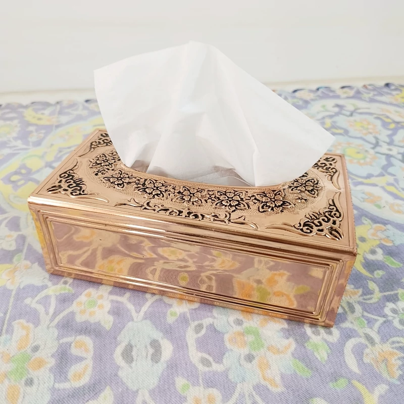 جا دستمال رو میزی زیبا و خاص تمام مسی نانو رنگ ثابت ارسال رایگان بسیار ضخیم و سنگین روی بدنه گل برجسته کاری شده