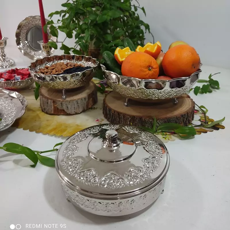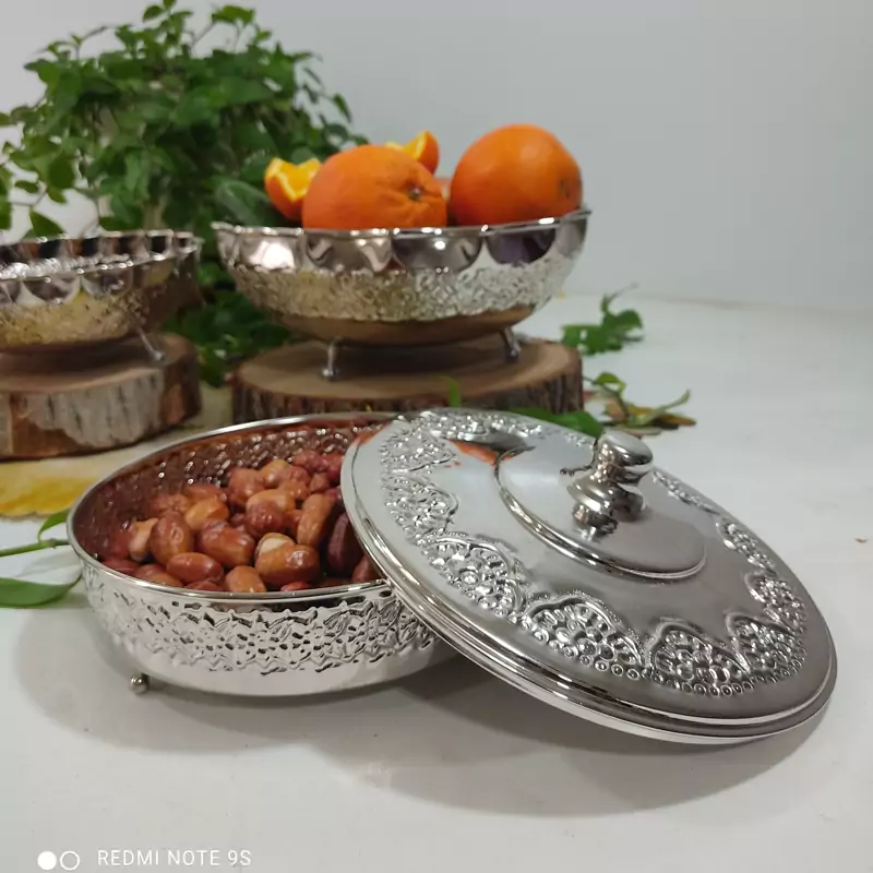 گز خوری مسی سه پایه در دار کروم شده رز مس کار شیک و براق میتونید برای شکلات و شیرینی و تنقلاتم استفاده کنید بسیار کاربردی
