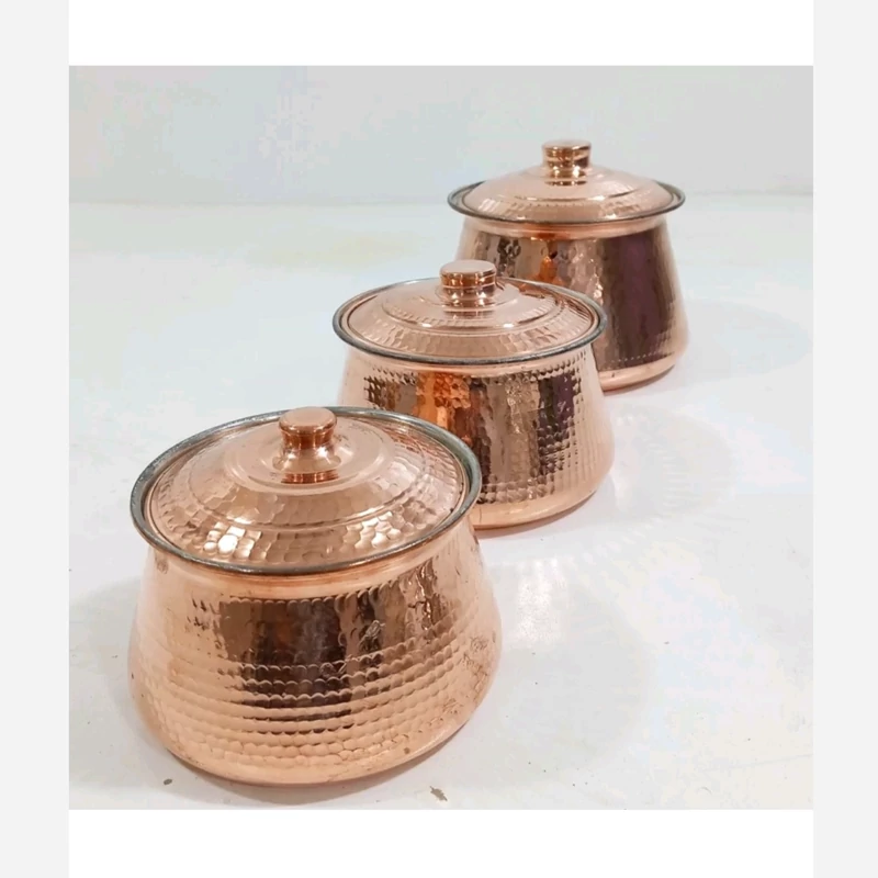 تیانچه سه تایی دسته دار مسی چکشی داخل قلع نانو شده رنگ ثابت ارسال رایگان کار بسیاز زیبا و ضخیم کاربردی در روزمره و نوزادی
