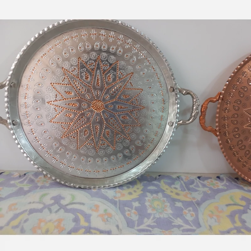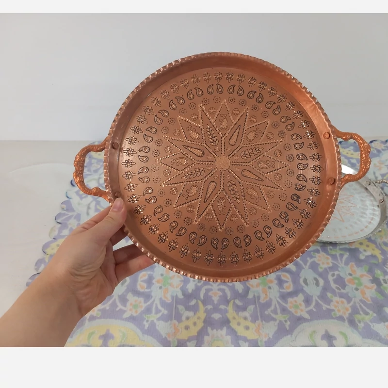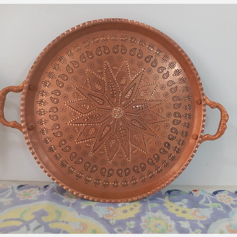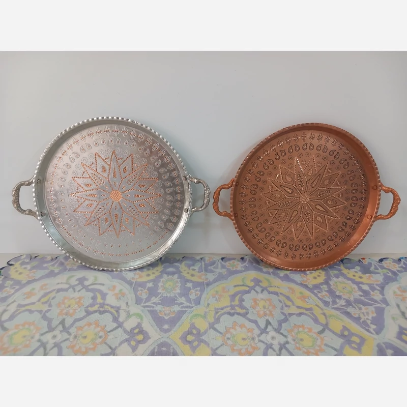سینی مسی و قلع قطر 28 دسته دار و تراش شده نانو رنگ ثابت ارسال رایگان،رنگش به انتخاب خود مشتری ارسال میشه