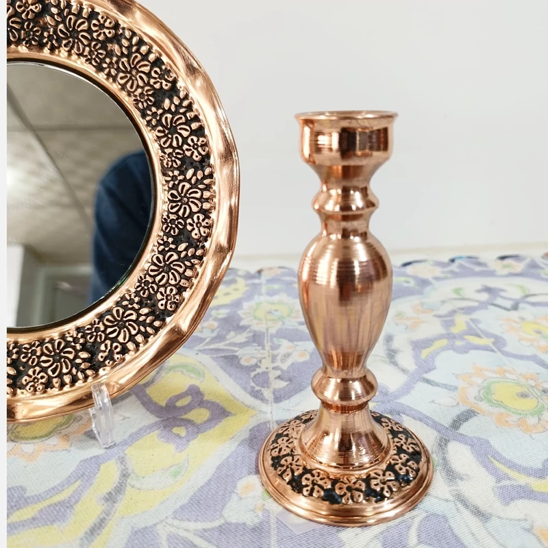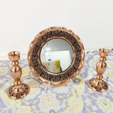 آینه شمعدان تمام مسی گل برجسته کاری شده زنجان
