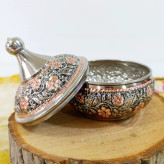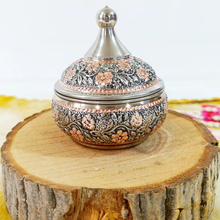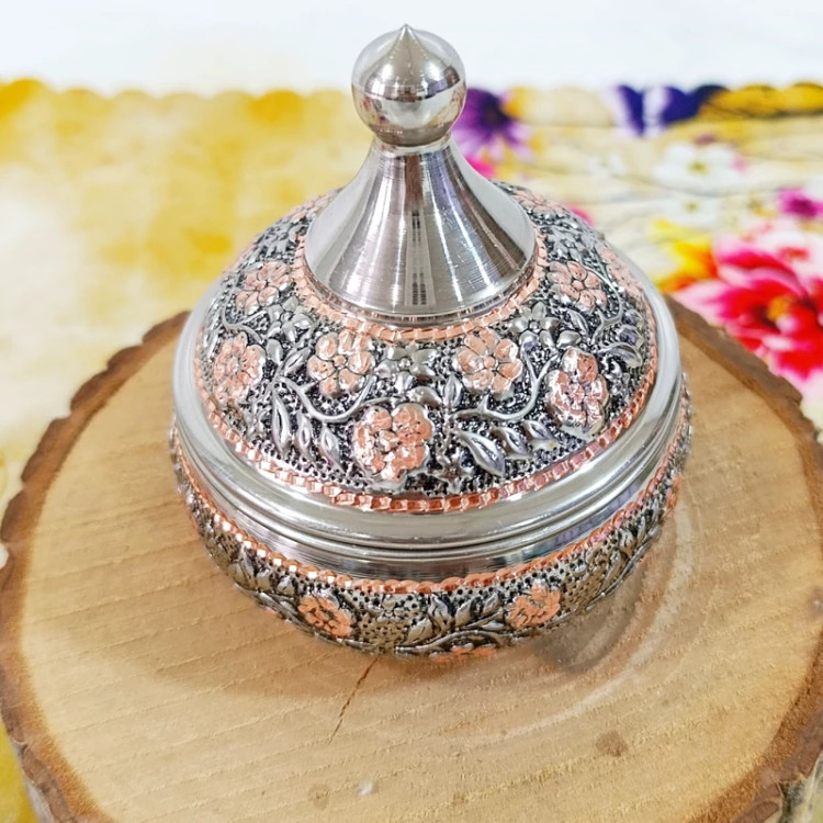 قندان مسی گل برجسته کروم شده تراش کاری شده